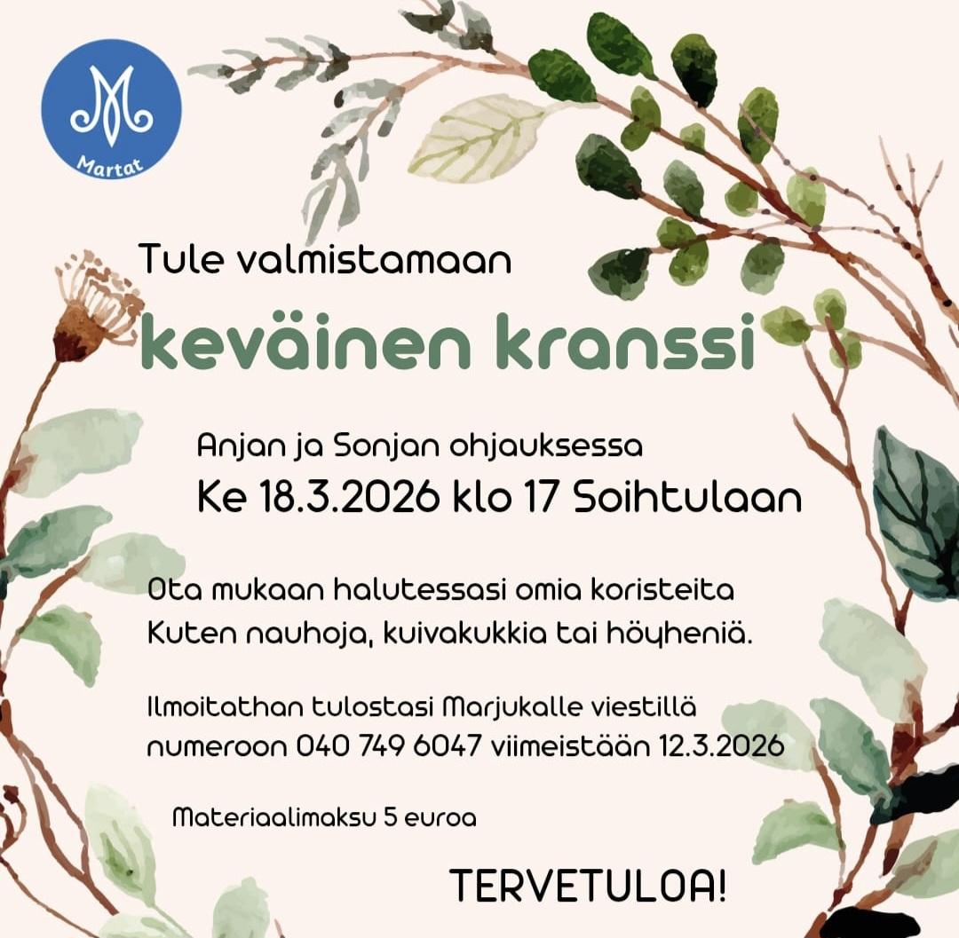Muutamme maailmaa tekemällä pieniä asioita isosti. Marttailu kuuluu kaikille ja toivotamme kaikki tervetulleiksi toimintaamme.